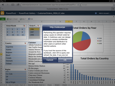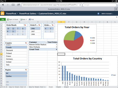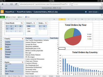 Taking my PowerPivot walk through I posted about previously, I accessed it via my iPad and found it worked very well. Check out the screen shots below.