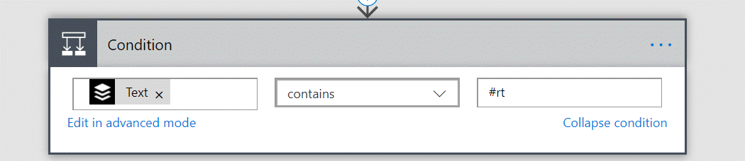 Condition: If text contains #rt