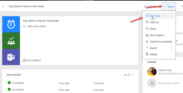4 thoughts on “Use Microsoft Flow to remind the Team of due dates from Planner