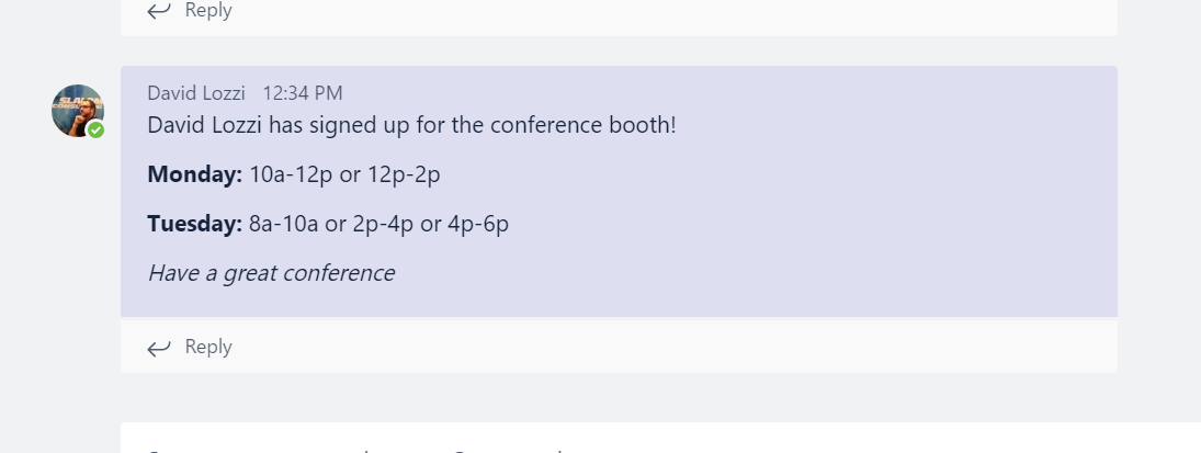 4. Can have additional actions taken on the message card (another blog post coming soon).