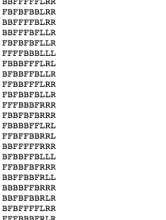 “You write a quick program to use your phone’s camera to scan all of the nearby boarding passes (your puzzle input); perhaps you can find your seat through process of elimination. Instead of zones or groups, this airline uses binary space partitioning to seat people. A seat might be specified like FBFBBFFRLR, where F means “front”, B means “back”, L means “left”, and R means “right”.” ref
