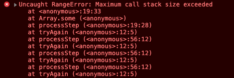Note the little setTimeout? I was getting a call stack size exceeded, as seen here: