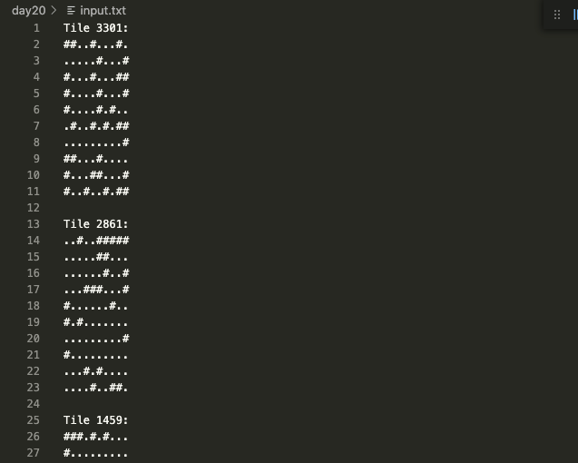 fs.readFileSync('./input.txt', 'utf-8').trim().split('Tile').map(t => {