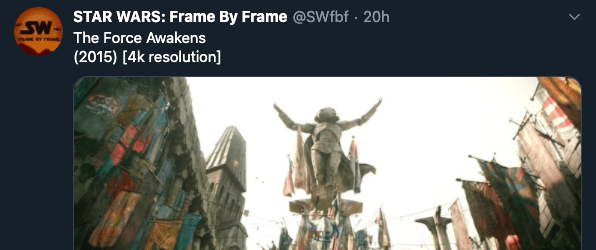 A new Twitter account has popped up, and if you're a Star Wars fan, you should follow them! Check out @SWfbf. No, it's not my account, I wish. This account is uploading 4k screen shots from the beautiful scenes in the Star Wars movies and TV shows. Epic right? I started downloading some manually and... Continue Reading →